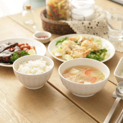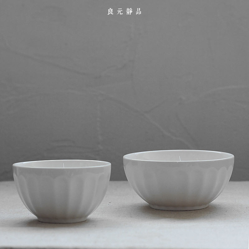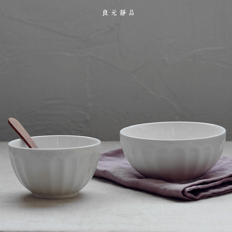 Lianyuan Jingfu Gourmet Food Photography Style Countryside Wind Vegetarian White ceramic rice bowls Classic retro vertical stripe Noodle Bowl