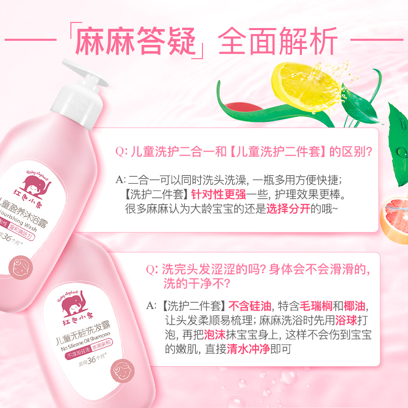 Red small elephant children shampoo shower gel bath lotion suit 3-15 year old no silicone oil shampoo bath two-in-one