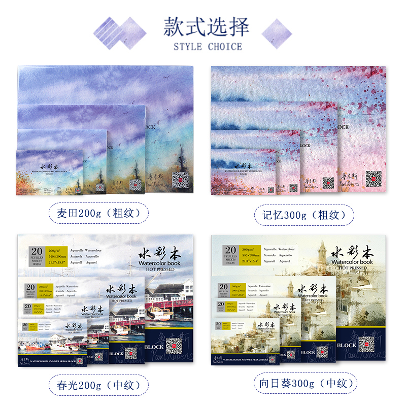 The new Rubens watercolor book 16K8K4K four-sided seal glue watercolor paper sketching portable watercolor painting book 20
