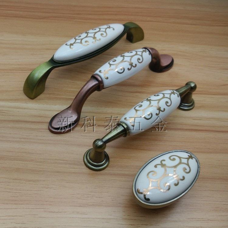 Green Red Ancient Ceramic Handle Eu Style Modern Minimalist Overall Cabinet Door Handle American Wardrobe Drawers Cabinet Door Handle