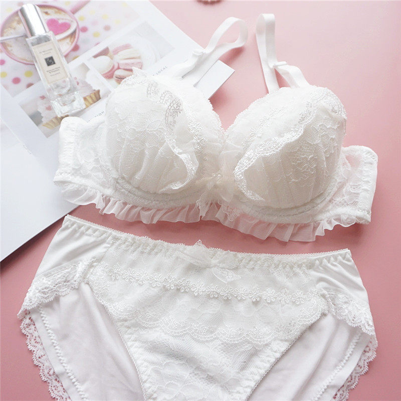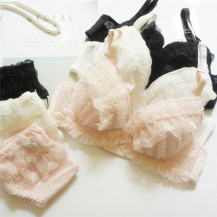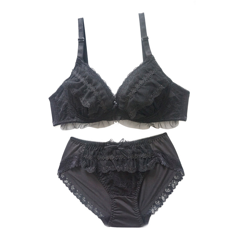 Girls' day is lace big steel ring black and white cozy cup large - size cute bra suit underwear