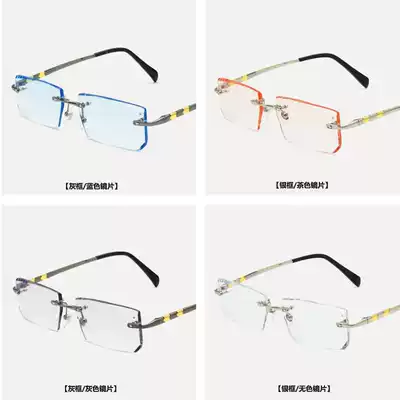 Cut-edge glasses men's pure titanium frameless glasses frame with glasses finished myopia glasses frame flat mirror color-changing glasses 8034