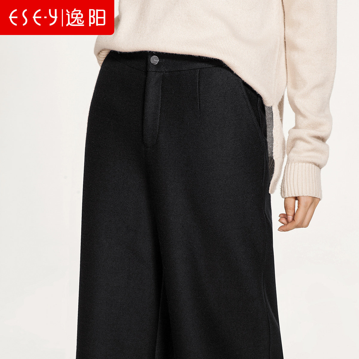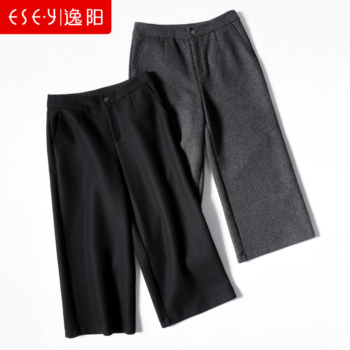 Yiyang women's pants 2020 autumn and winter new woolen woolen wide-leg pants women's loose casual pants thickened nine-point pants straight-leg pants