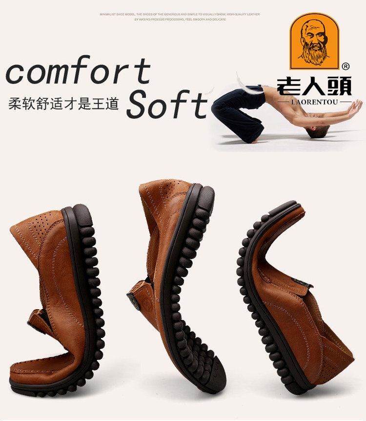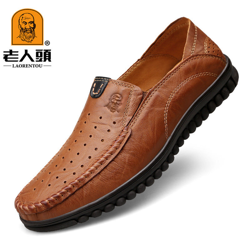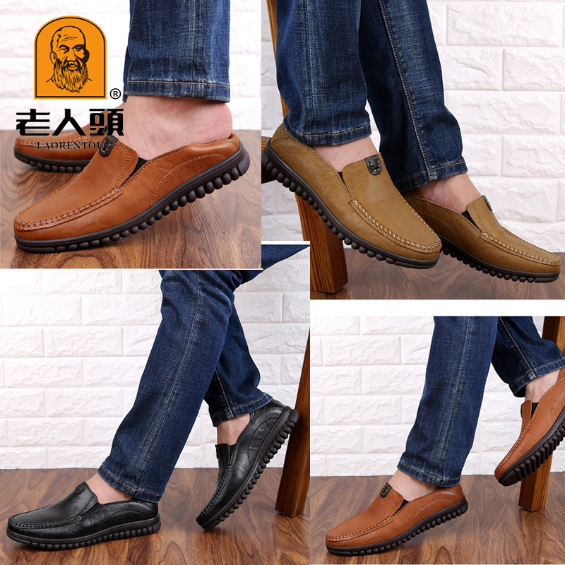Old man's head casual leather shoes men's thick-soled beanie shoes men's leather non-slip dad shoes middle-aged and elderly men's shoes casual shoes