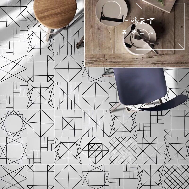 Nordic modern simple black and white tiles 300 geometric lines Kitchen wall tiles Bathroom restaurant floor tiles tiles 300