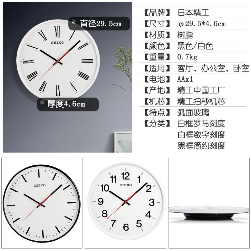 SEIKO Japan SEIKO new clock fashion modern simple living room 12-inch silent wall clock Quartz watch
