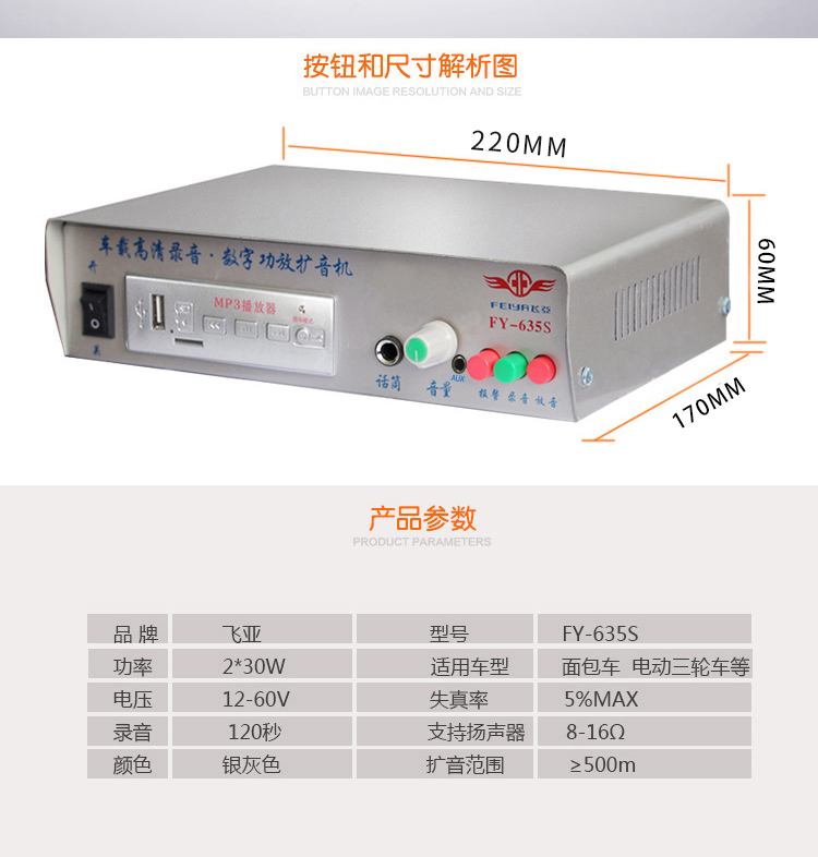 Feiya FY635T car amplifier host 12V60V high-power HD recording Hawking propaganda horn amplifier