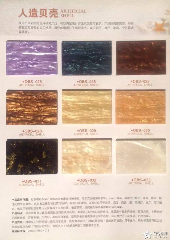 (Hotel Special Finishes Board) Eco Resin Artificial Imitation Shell Decorated Board Auberstone Furniture Cabinet Doors Veneered