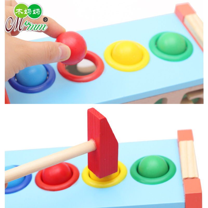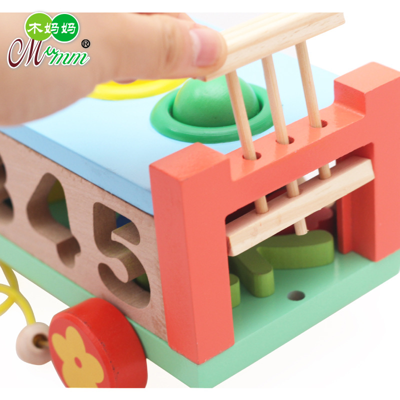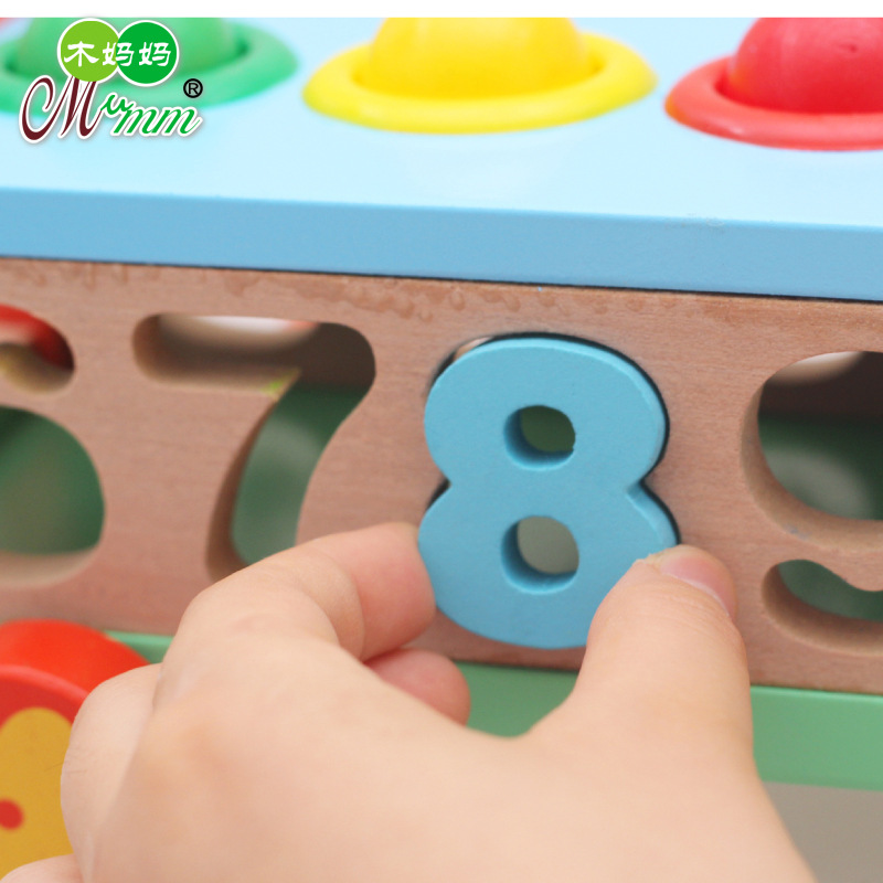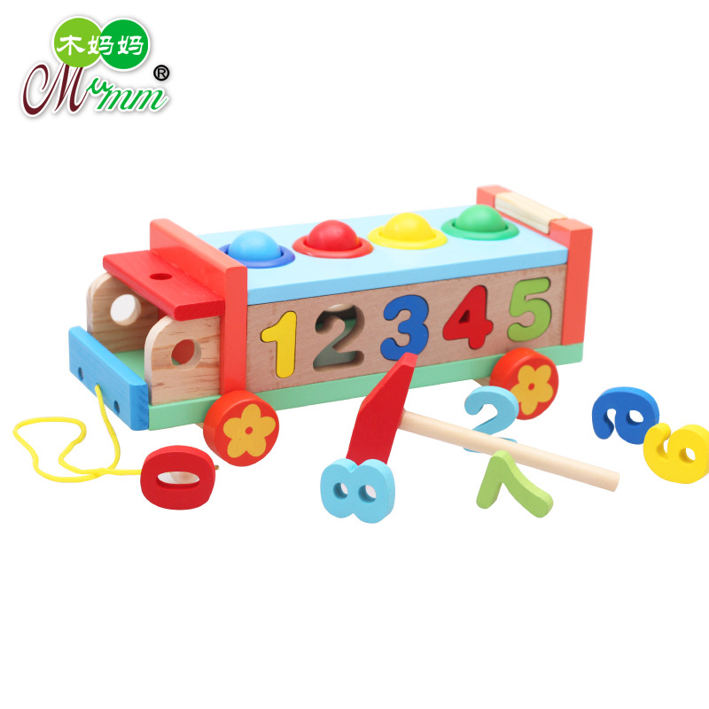 Children's educational early childhood education hand cart toy wooden shape matching digital cognitive knock cart