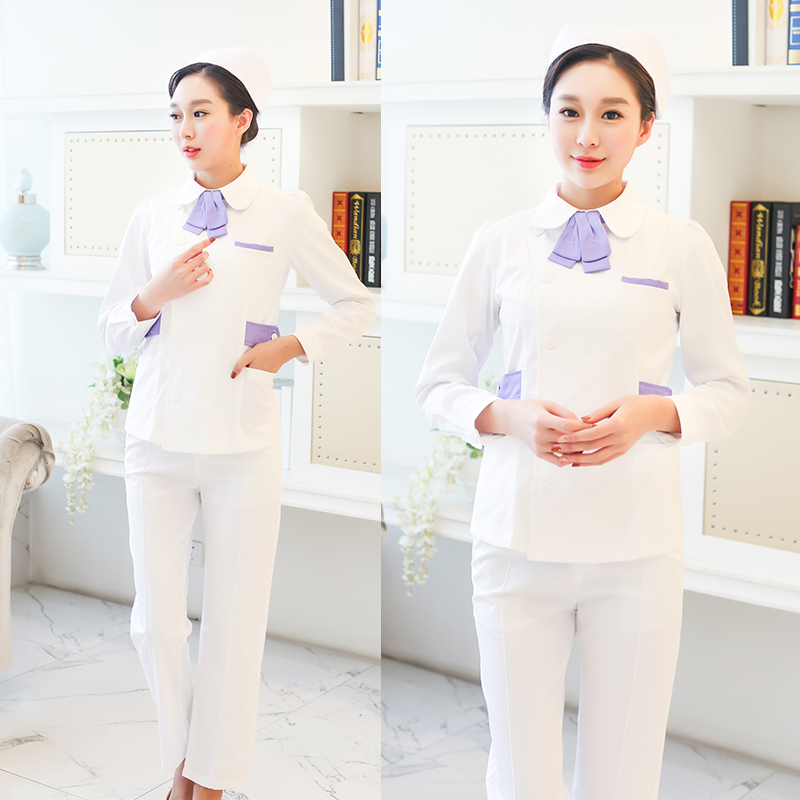 White Coat Purple Collar Long Sleeve Suit (Blouse Tightness Pants) (Without Nurse Cap) White Coat Blue Collar Long Sleeve Suit (Jacket Tightness Pants) (Without Nurse Cap) Blue Collar Long Sleeve Suit (Without Cap)