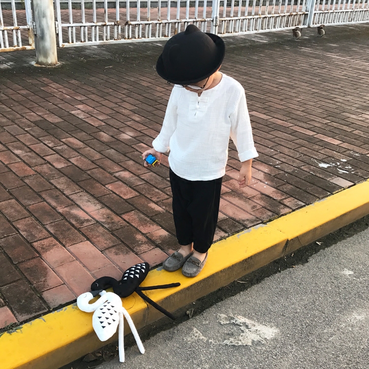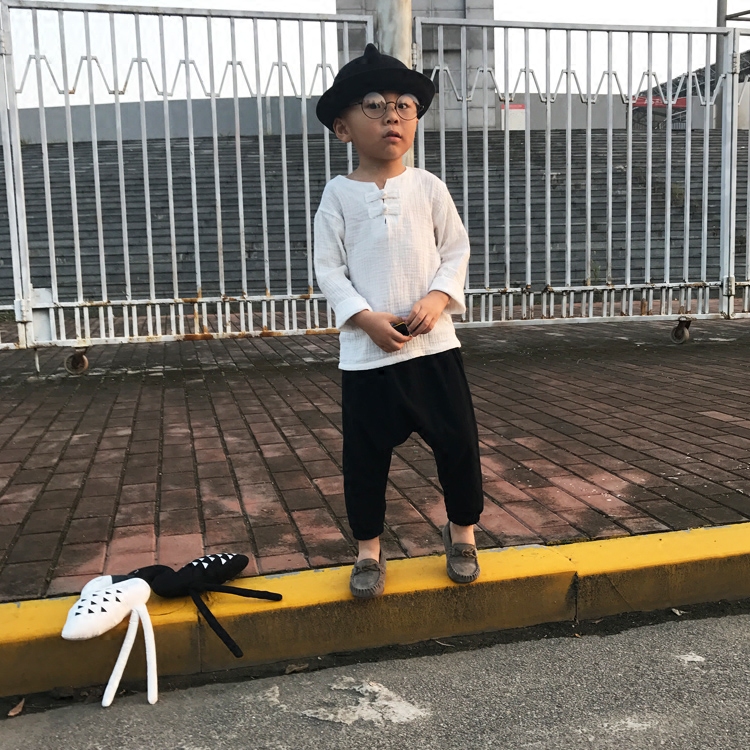 Children's cotton linen long sleeve T-shirt small middle child spring autumn money in pro-subjumpsuit linen shirt linen shirt boy girl girl blouse