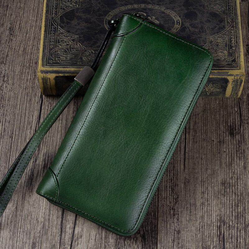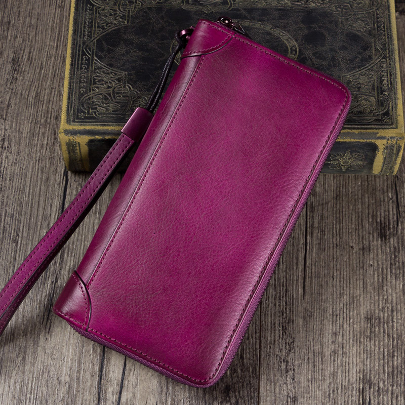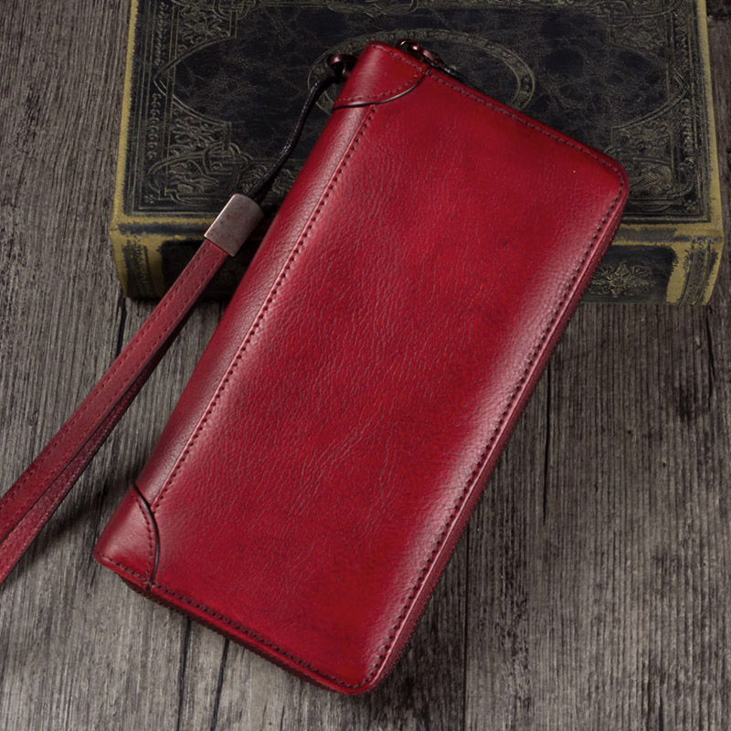 Lady Handmade Leather Clip Woman Head Layer Cow Leather Money Clip Woman Retro Wallet Woman Long Version Genuine Leather Pull Necklace Bag Implant Tannic Leather