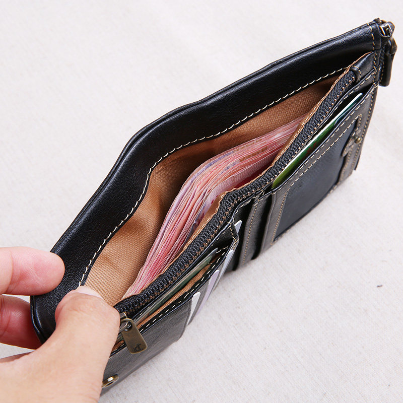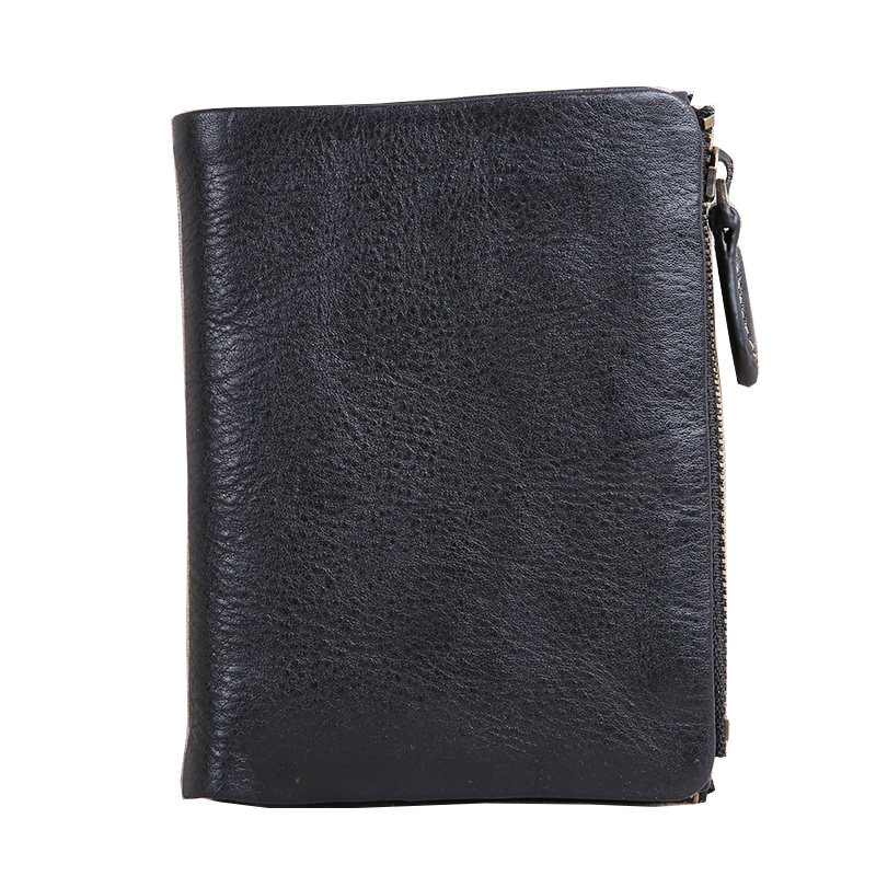 Handmade wallet men's leather short buckle zipper top layer leather youth wallet tide vertical wallet