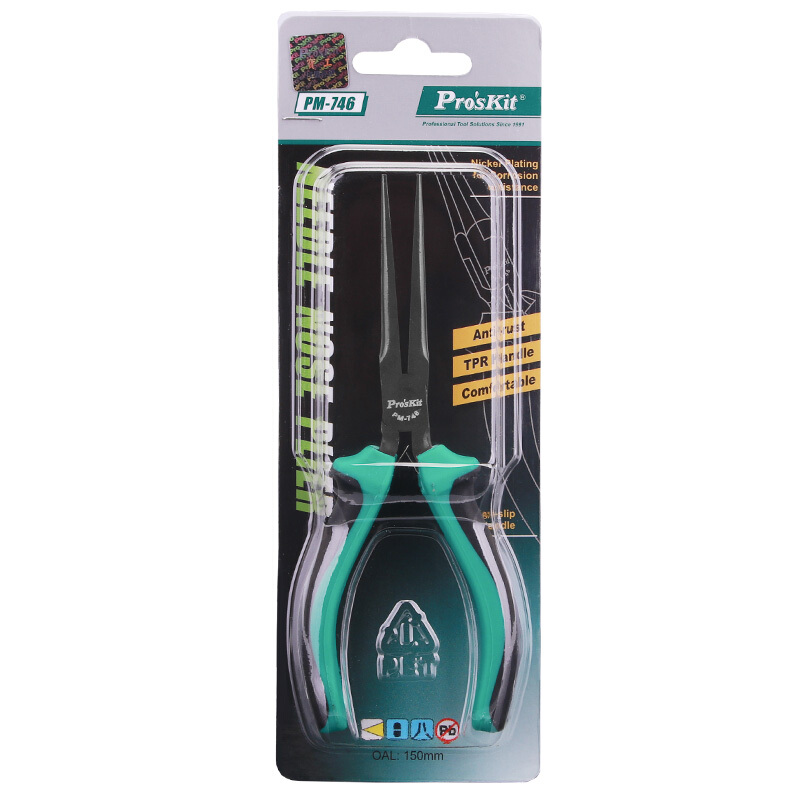 Taiwan Baogong PM-746 two-color toothless fine nose pliers needle nose pliers electronic pliers long nose pliers