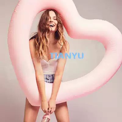 Foreign trade export cute heart-shaped inflatable swimming circle love swimming floating bed red heart blister 120CM adult bando