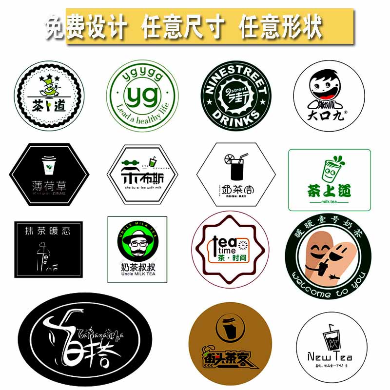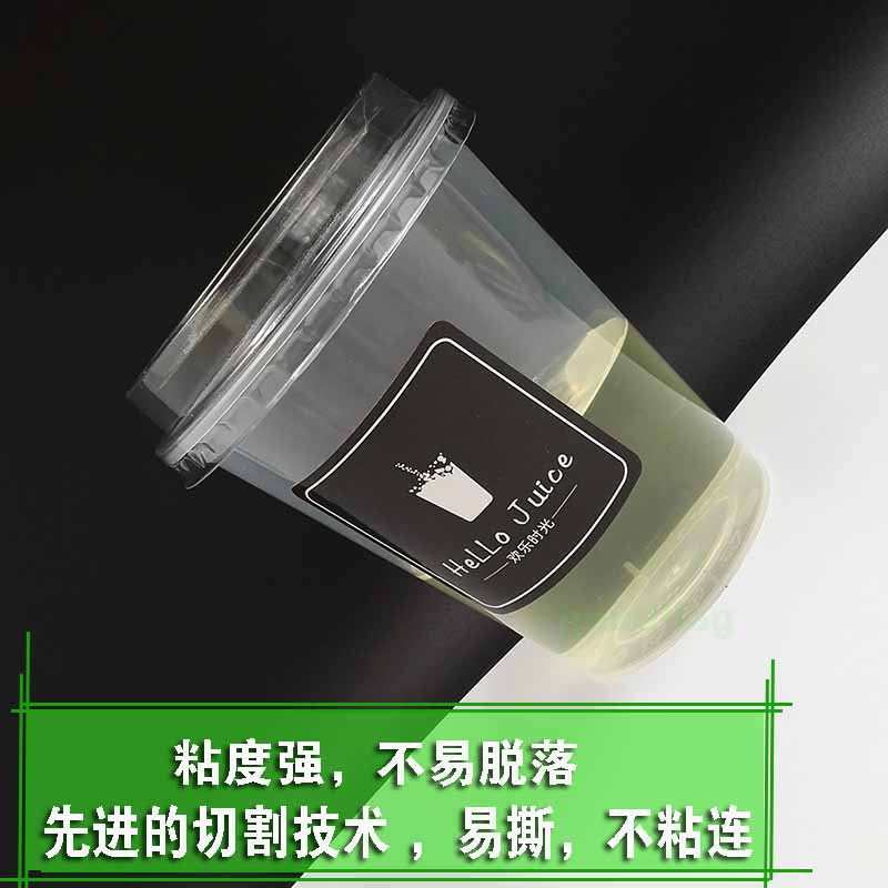 Customized disposable plastic milk tea drink cup transparent copper paper waterproof easy tear film sticker label