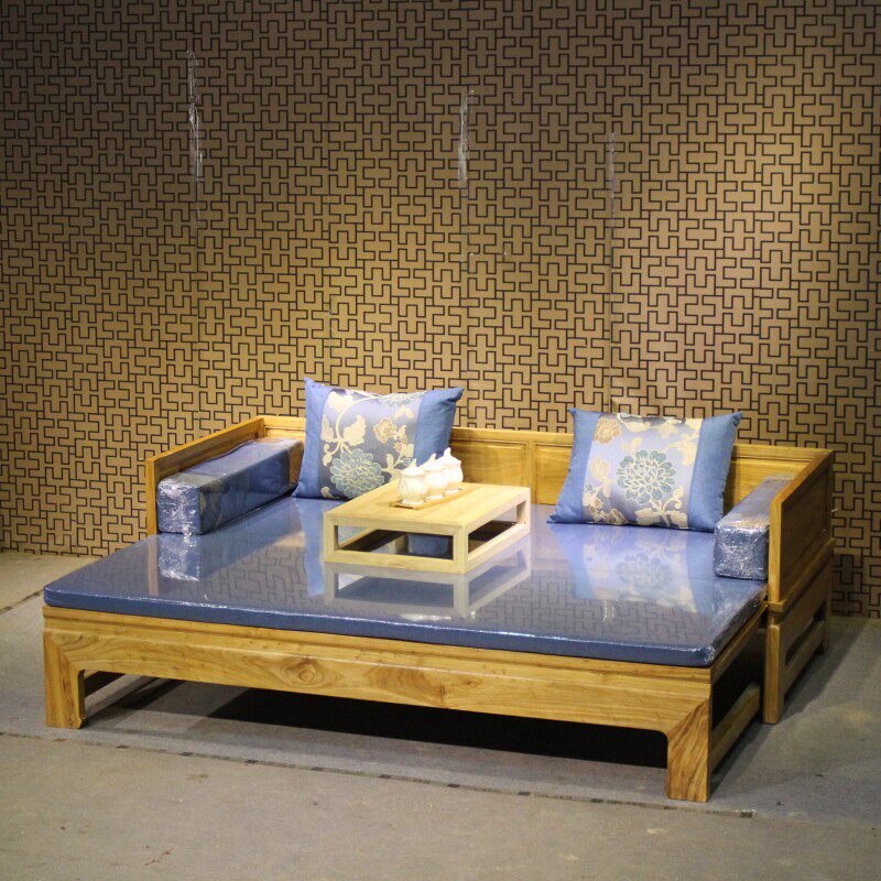 QAY home old elm push-pull Lohan bed tatami telescopic solid wood sofa new Chinese double bed customized