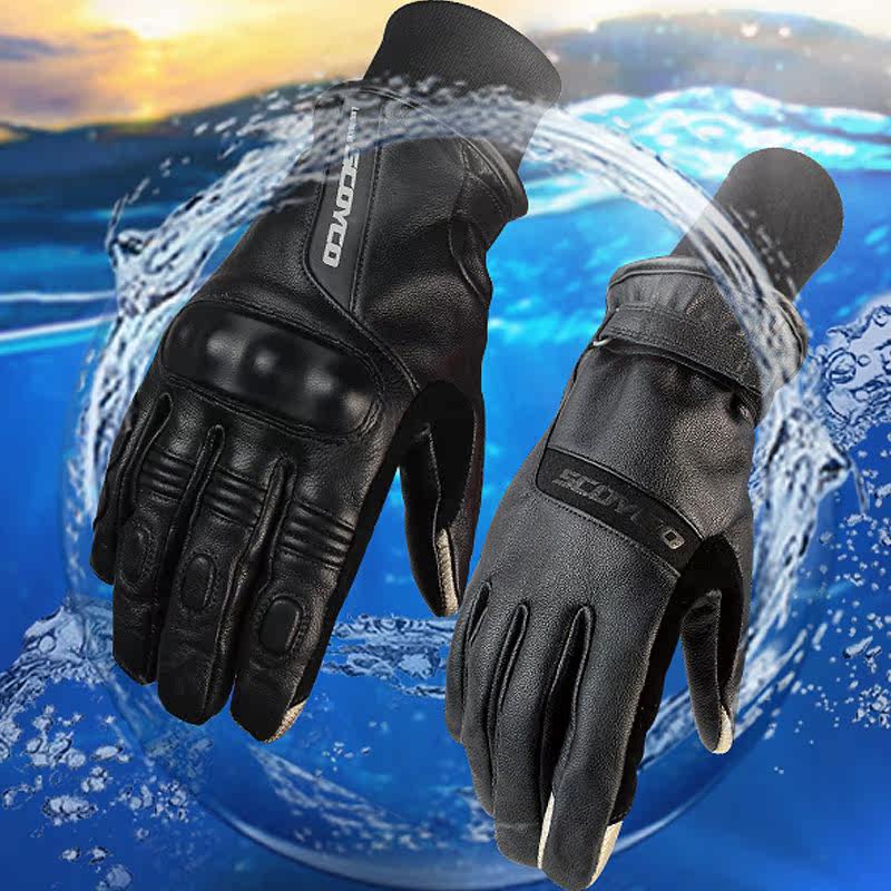 SCOYCO Racing Down Locomotive Sheepskin Waterproof Gloves Riding Locomotive Retro Winter Warm And Anti-Wind Dermis