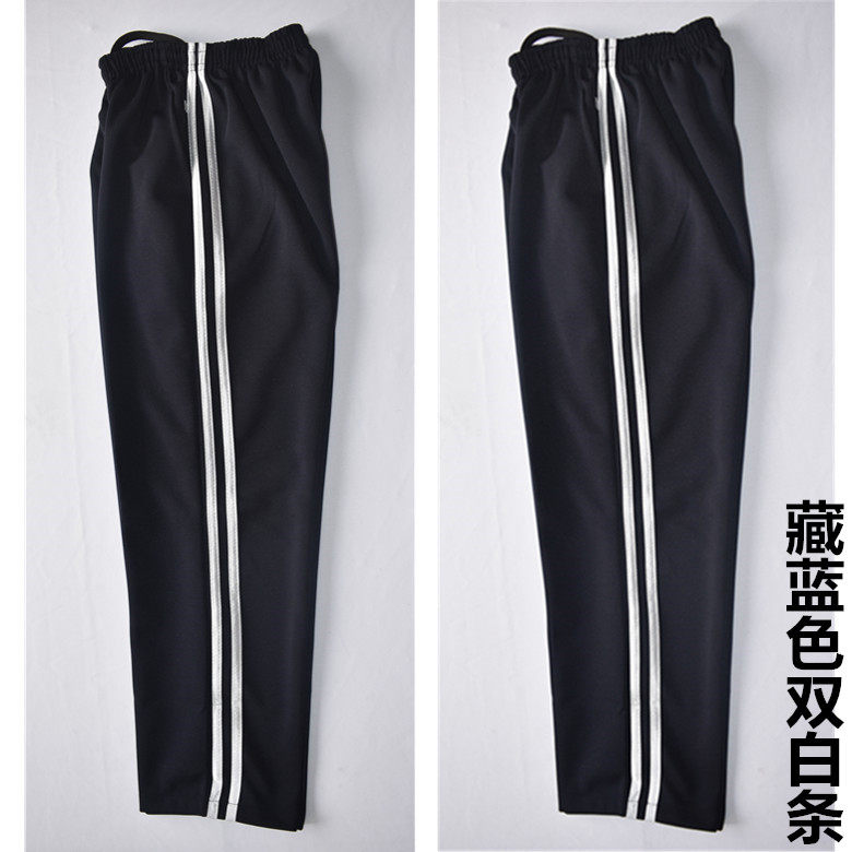 Black double white carrying student sports pants parallel bars sports pants junior high school students military training performance activities long pants school uniform