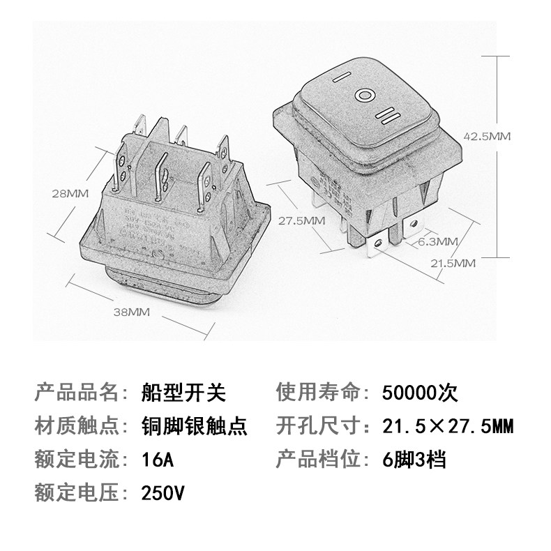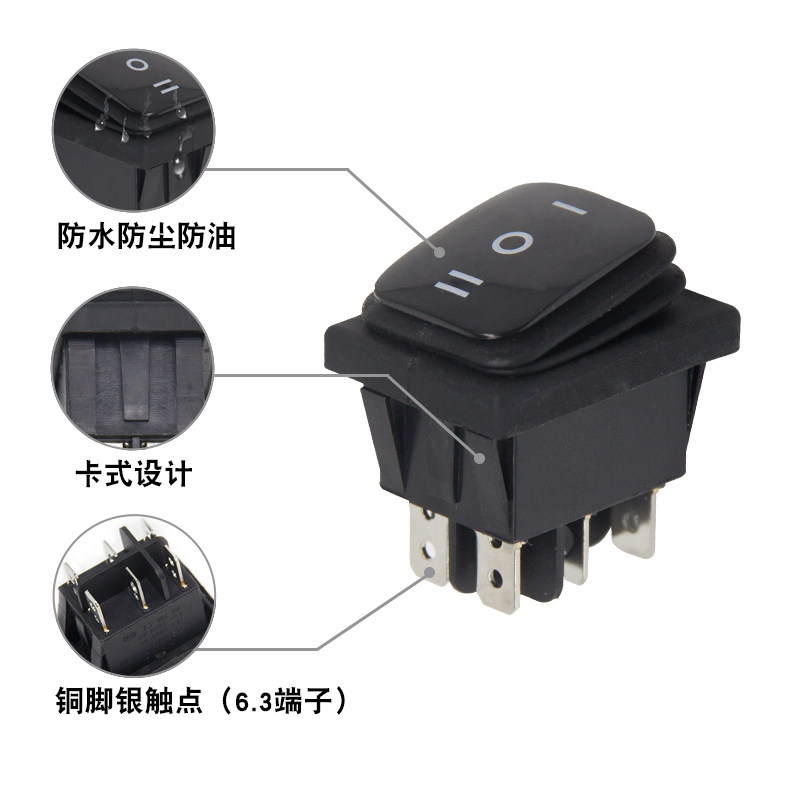 Huijun Waterproof Rocker Switch RL2KCD4-2X2-3D Six Feet 3 Gear Black No Lamp Boat Type Wane Switch