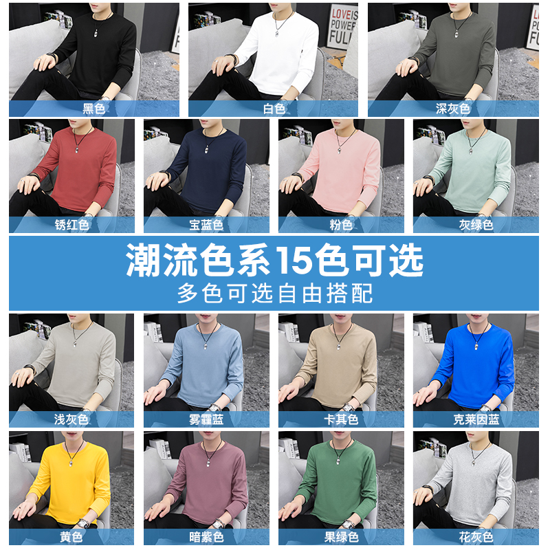 Long-sleeved t-shirt men's pure cotton autumn clothes cotton white plus velvet thickened inner thermal underwear autumn and winter bottoming shirt solid color