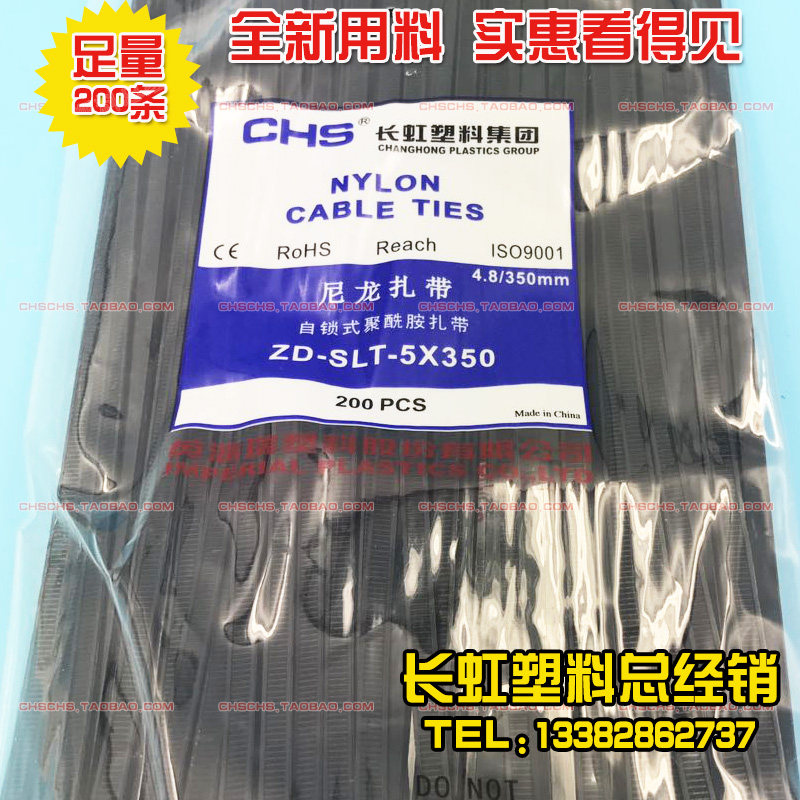 CHS Long Iridescent Plastic Self-Lock Type Nylon Tie CHS-5 * 350 National Standard Black A-level 200 Root Pack Binding Belt