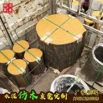 Custom cement imitation wood stake round table stool Concrete imitation wood grain table bench Outdoor leisure bionic tea table