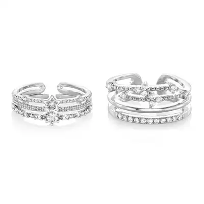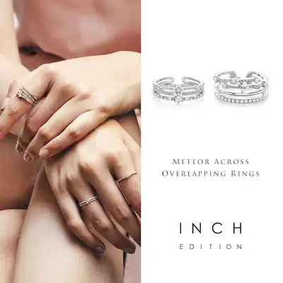 INCH Edition meteor stroke drop Silver index finger ins ring set three entry opening adjustable personality