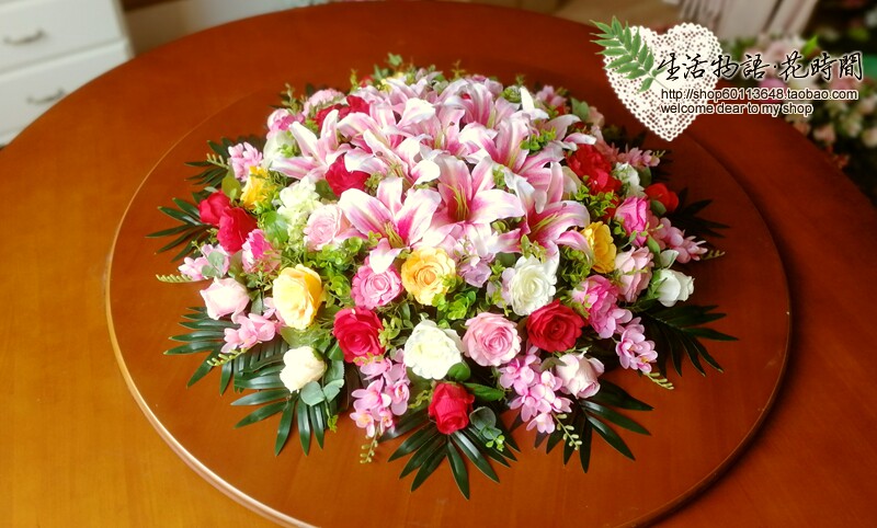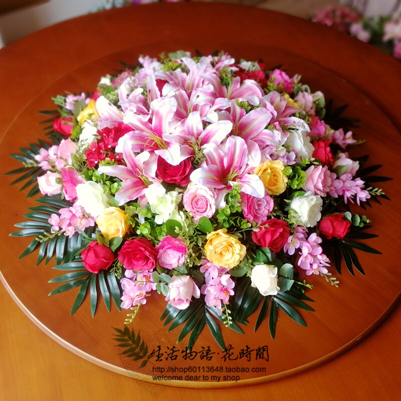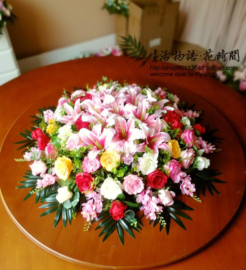 Special price Large hotel round table simulation flower turntable flower Hotel conference table flower fake flower silk flower Dining room flower arrangement