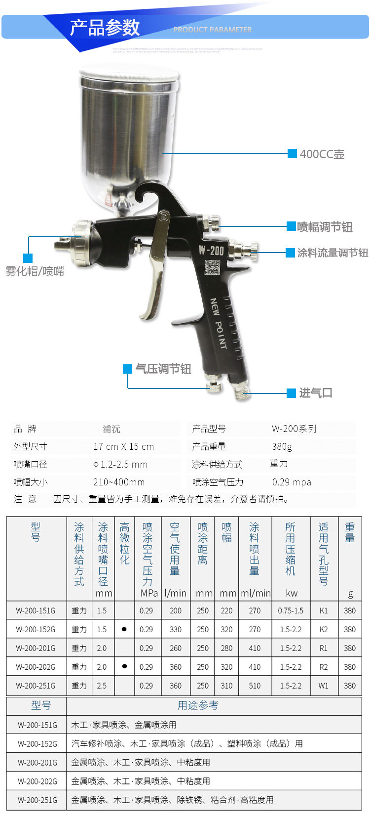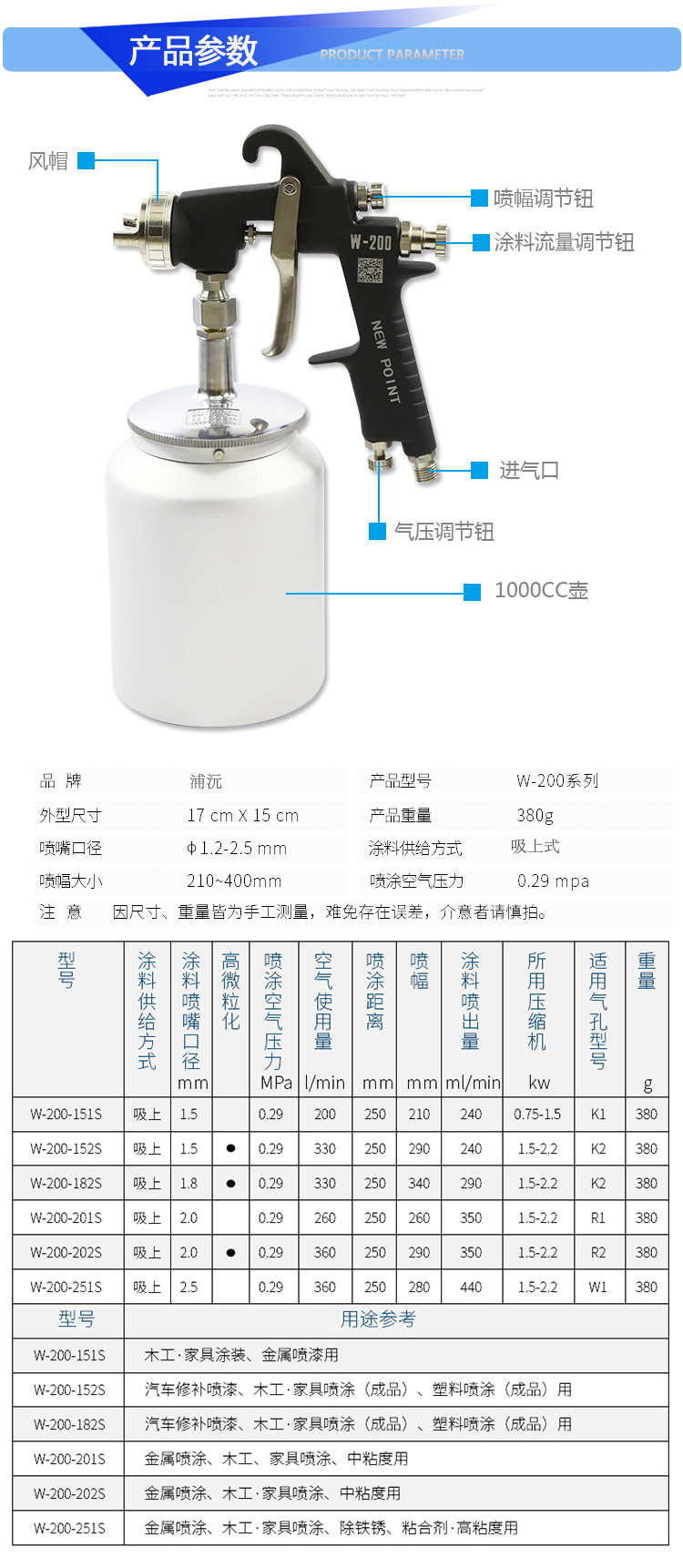 Taiwan Puyuan spray gun W-200 spray gun upper and lower pot spray gun high atomization furniture car paint spray gun primer