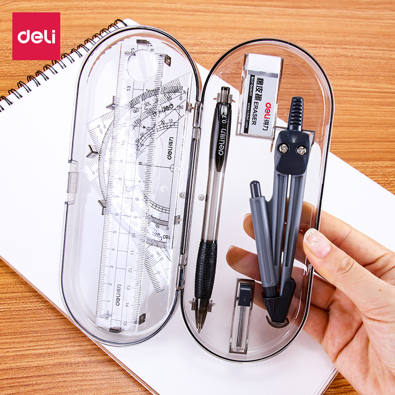 Able Metal Compasses Student Stationery Compasses Professional Stainless Steel Drawing Tool Suit Ruler triangular ruler Drawing suit Five pieces of metal material drawing compasses plotter Plotter Design
