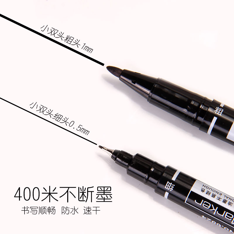 Able double headlong note pen 6824 oily Mike pen tick pen paint pen sign to office stationery black blue red waterproof bizarre pen not to fall off thick pen sketching side pen sketch with small double head