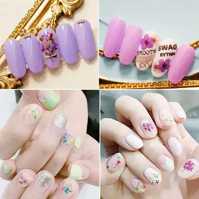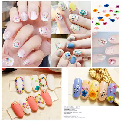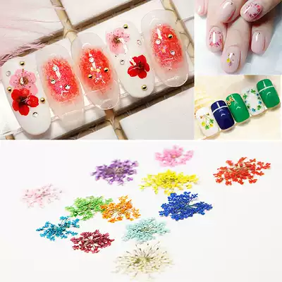 Nail dry flower accessories Japanese 3d real flower color five-petal flowers full set of mixed nail decorations Nail polish glue