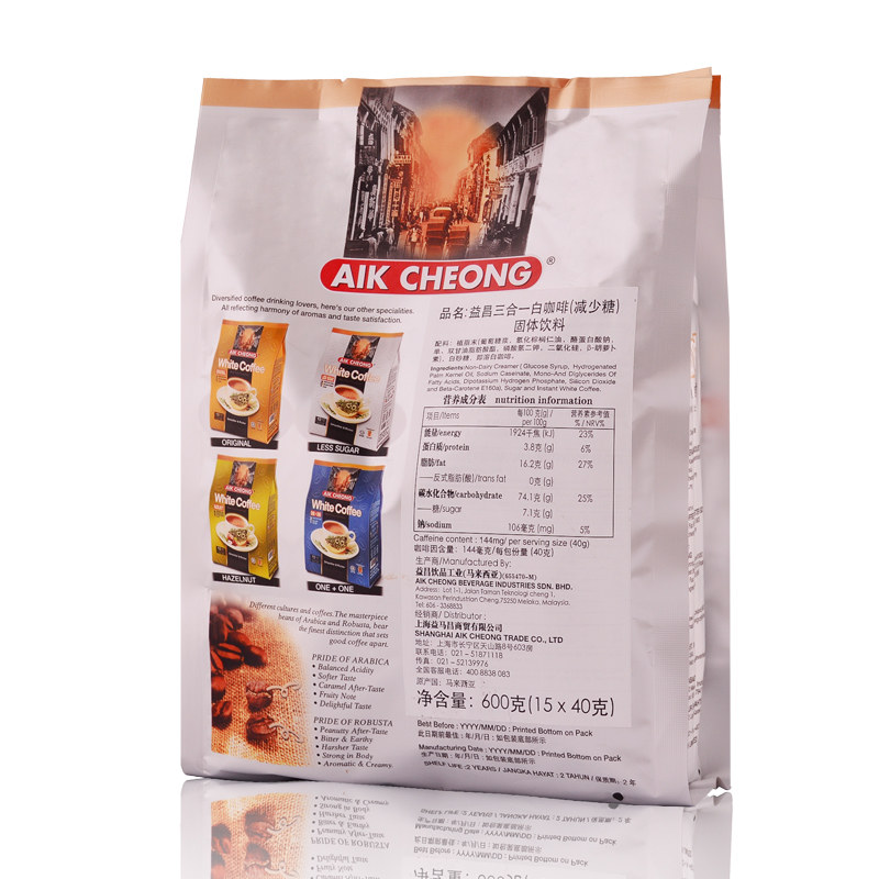 Malaysia imports Yanchang Street in three-in-one white coffee to reduce sugar instant coffee powder 15 to 600g