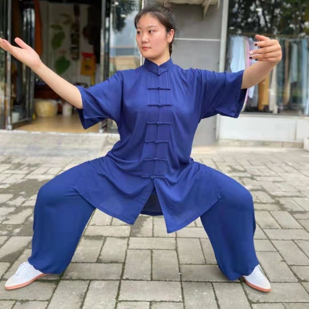 Tai chi clothing women's tai chi clothing men's morning exercise clothing cotton silk suit long-sleeved summer short-sleeved cotton white martial arts clothing