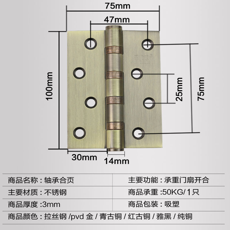 Black 304D stainless steel flat open hinge 4 inch bearing loose-leaf 5 inch room door folding page wooden door hinge five gold accessories
