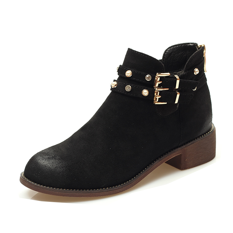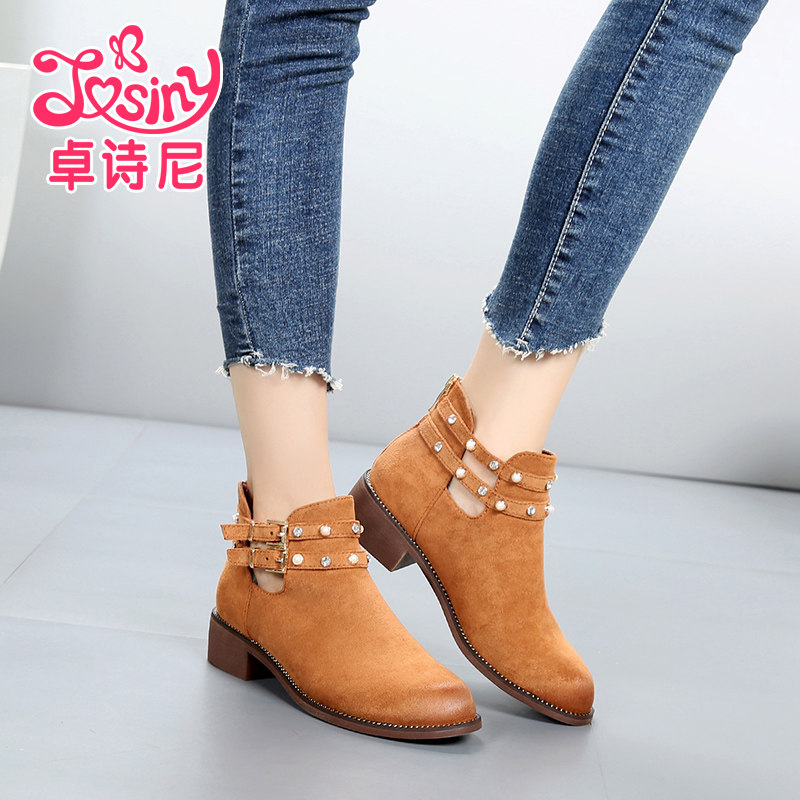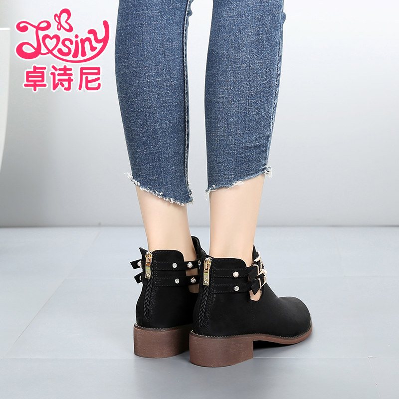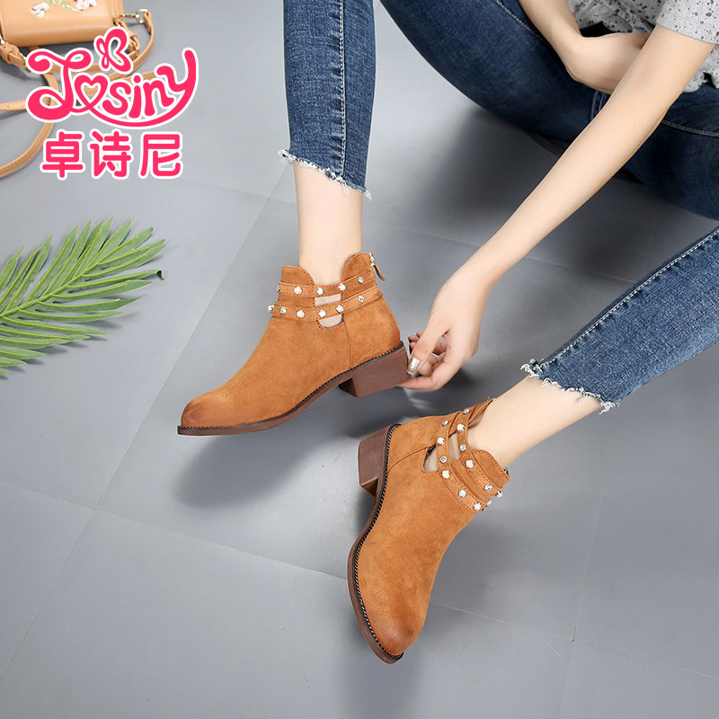 Zhuoshini clearance sale Brand sale Martin boots Medium heel Casual round head Metal rivet zipper booties Naked boots