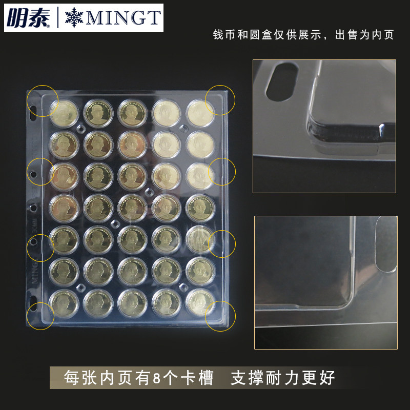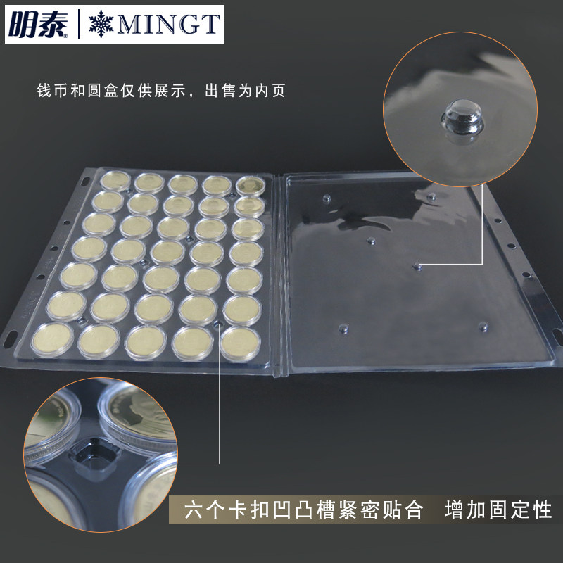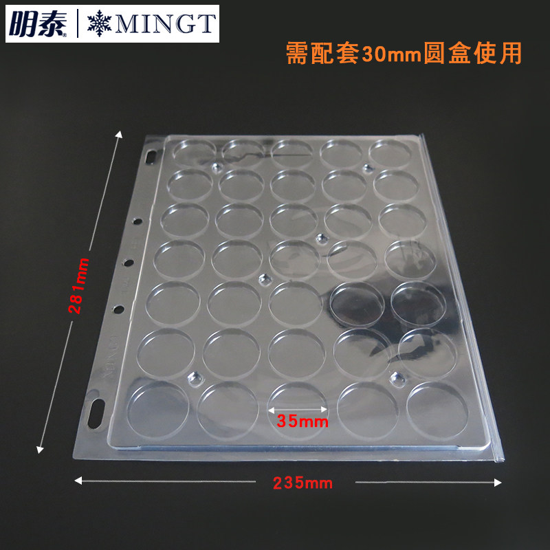 Mingtai brand small round box coin box collection coin book inside page can hold 35 round box 30mmPET loose leaf