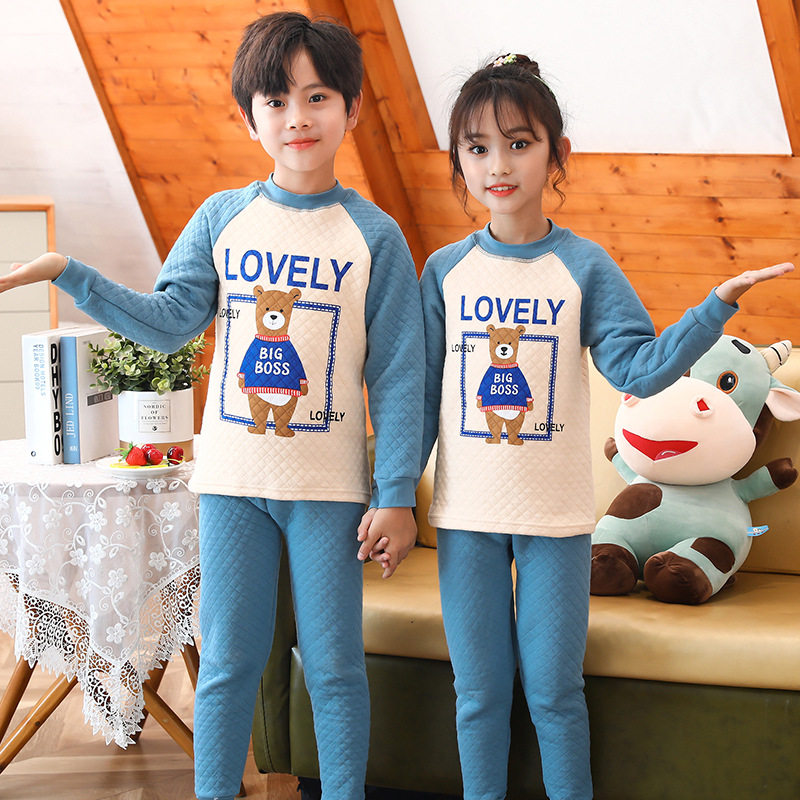 CUHK Boy Girl Boy Elementary School Student Triple Layer Thickened Warm Underwear Suit Autumn Clothing Sanitary Pants in Neckline Pyjamas