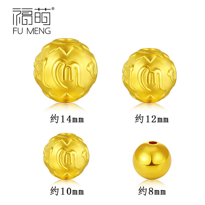 8mm Foot Golden Light Face Gold Bead (0.50±0.05g) 10mm Six-Character Mantra Gold Bead (0.73±0.05g) 12mm Six-Character Mantra Gold Bead (1.20±0.05g) 14mm Six-Character Mantra Gold Bead(1.48±0.05g)