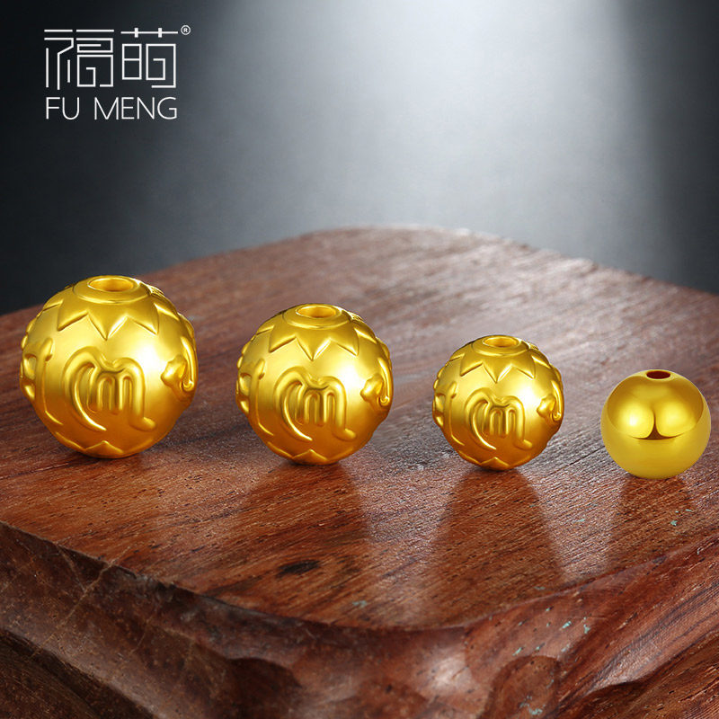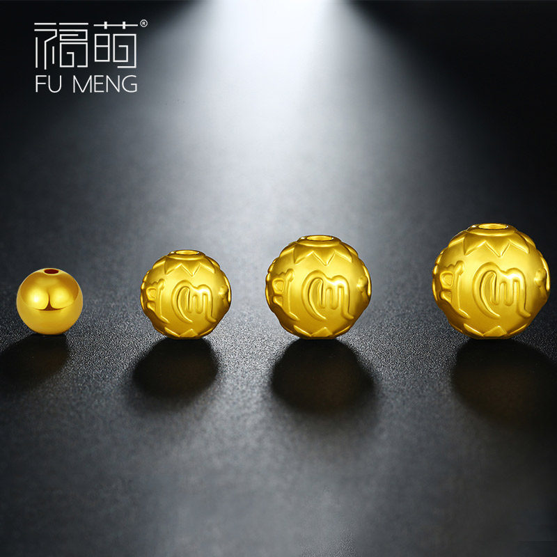 Fu Meng 999 gold transfer beads loose beads 3D hard foot gold beads road road through bracelet beads small gold beads men and women