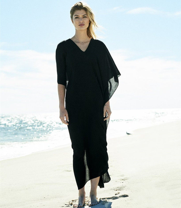 Seaside vacation beach dress black and white solid color Chiffon bikini Swimsuit Sunscreen blouse Jacket Loose blouse long dress