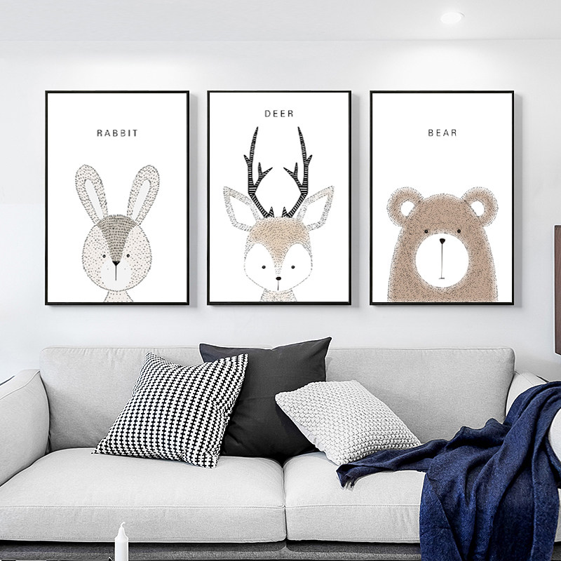 Mona Lisa Cross embroidered line embroidered new cute animal triptych minimalist modern living room small European-style bedroom