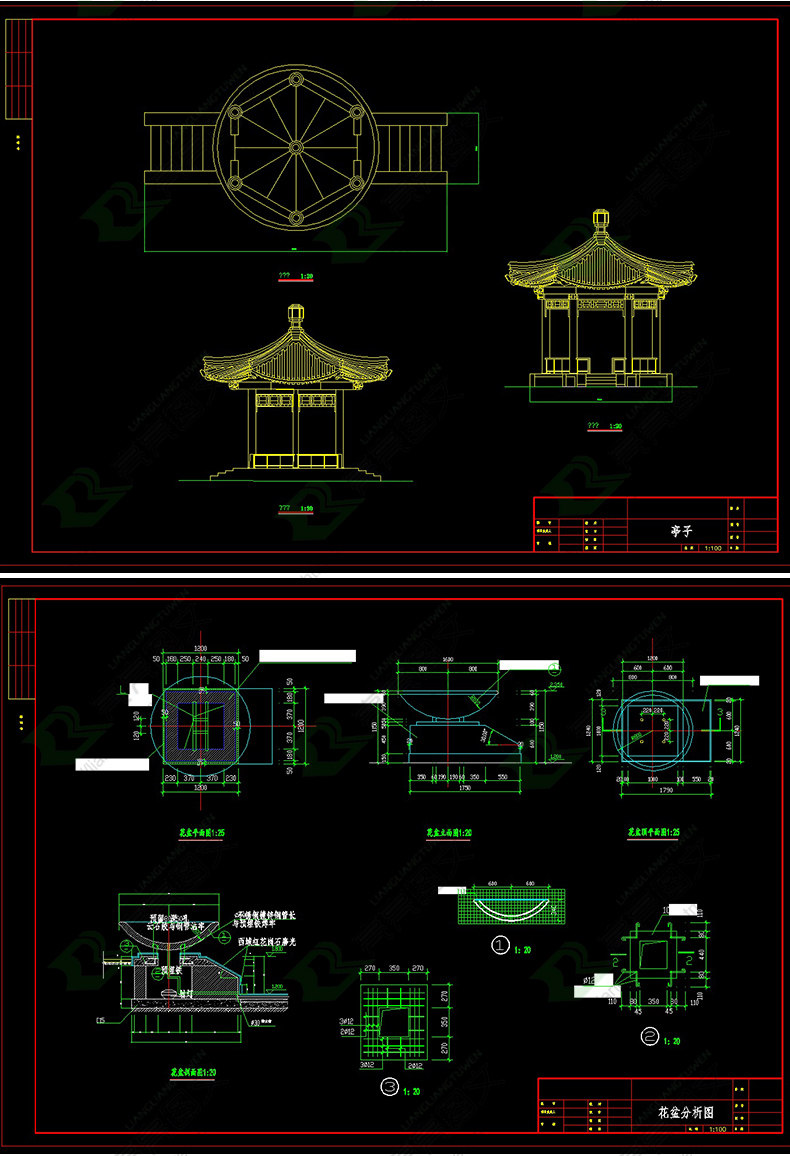 CAD full set of construction drawings park landscape greening design facade plane drawings gallery material template