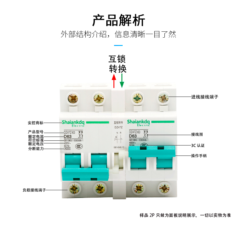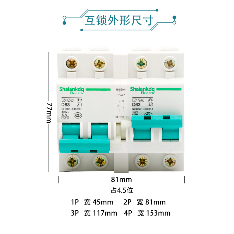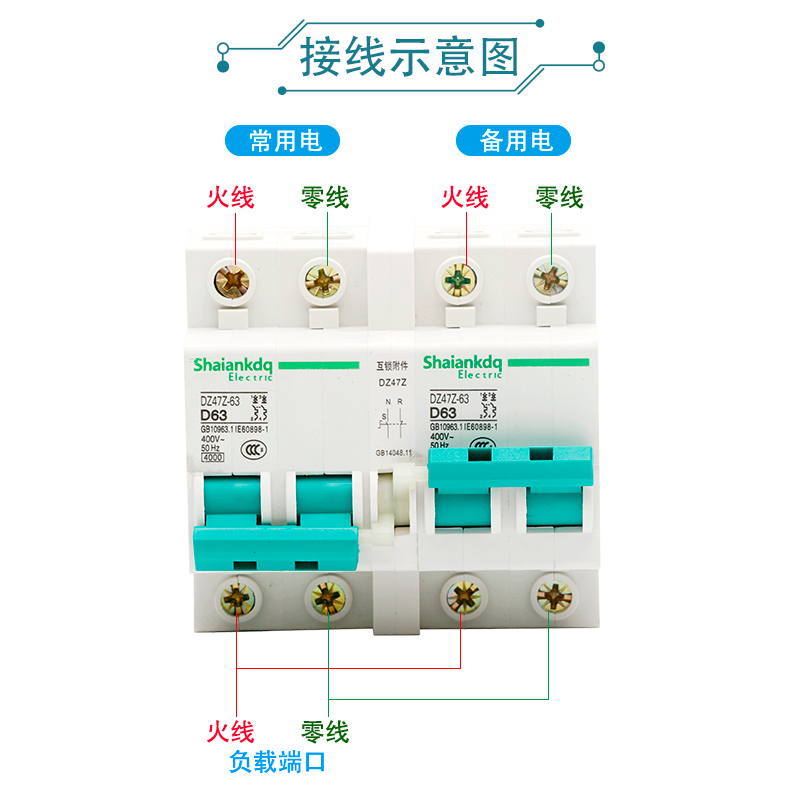 DZ47Z-63 1P2P3P4PD type interlock circuit breaker interlock open household dual power supply automatic transfer switch