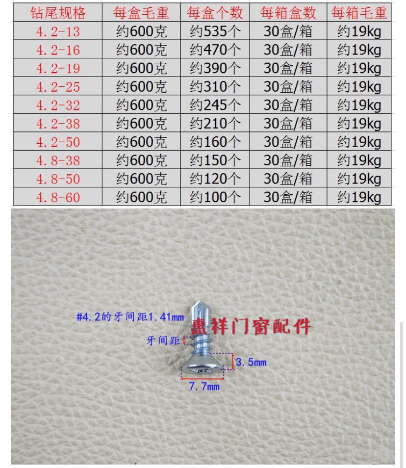 Spin-plate B type drilling tail nail class (bagged) cross slot sink head self-tapping self-drilling screw flat dovetail
