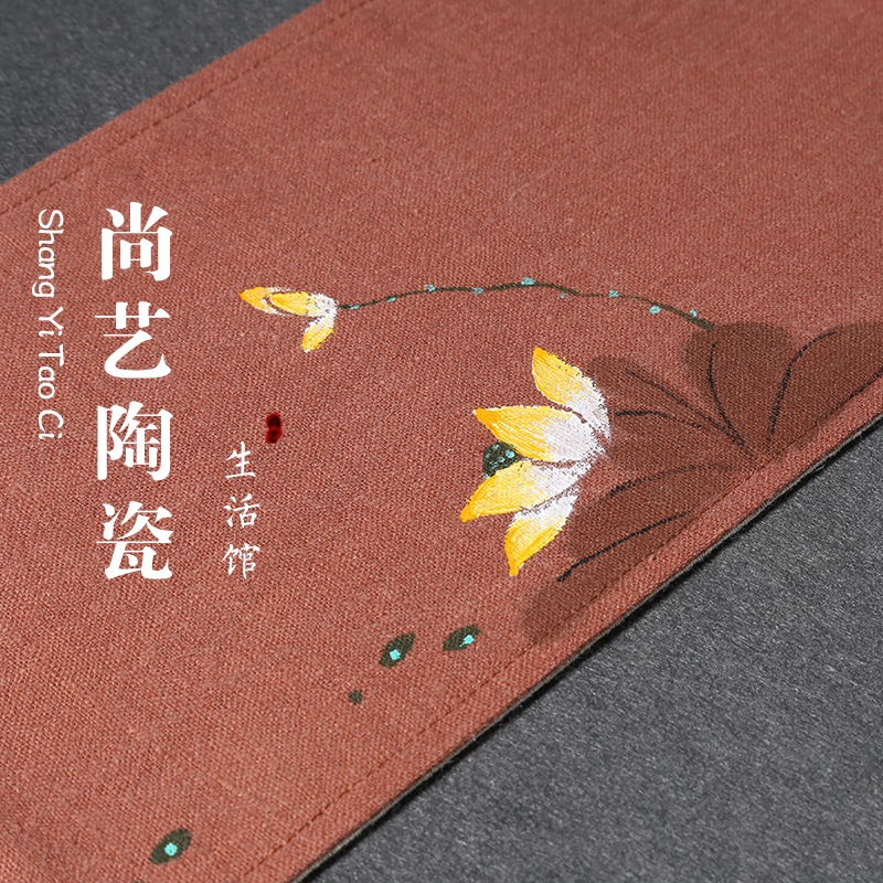 Hand-painted tea mat cotton linen linen Zen large table flag Japanese dry tea curtain linen tea mat tea cloth tablecloth
