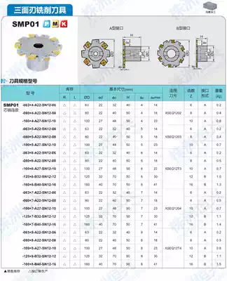 Zhuzhou Gong tooth brand SMP01 Diameter 63 80 100 Thickness 4 5 6 7 8 Indexable three-sided edge milling cutter plate