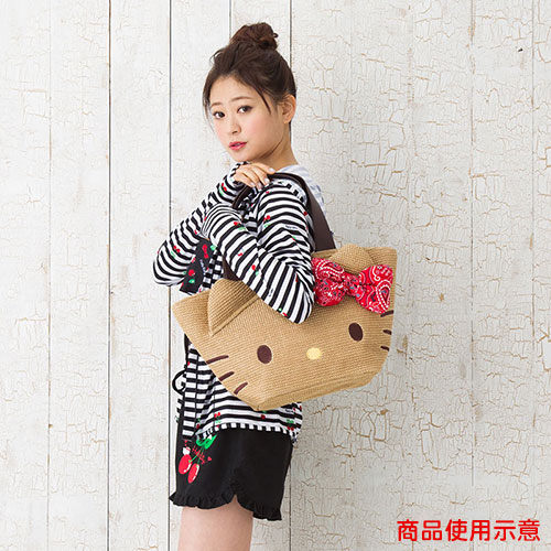 HELLO KITTY big face shape woven bag (Bandana bow)