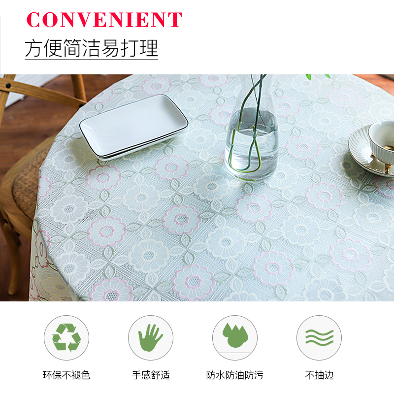 Eurostyle tea table plastic pvc large round table small round table table cloth waterproof and burn-proof and anti-wash table cloth for home
